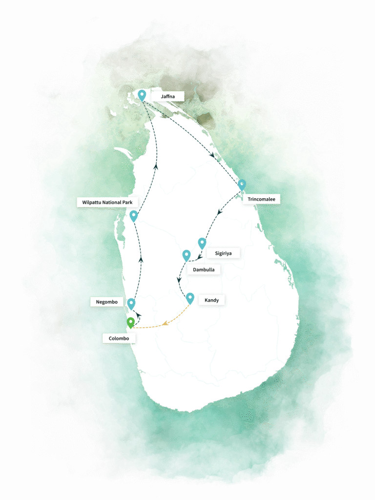 This immersive 10-day tour ventures into the captivating northern and eastern regions of Sri Lanka, beyond the usual  tourist track. Discover ancient temples, rich Tamil cultural heritage, pristine beaches, and remarkable wildlife across less explored landscapes. The journey beautifully balances wildlife safaris, spiritual sites, vibrant local culture, and coastal  relaxation, offering an authentic Sri Lankan experience in diverse settings.